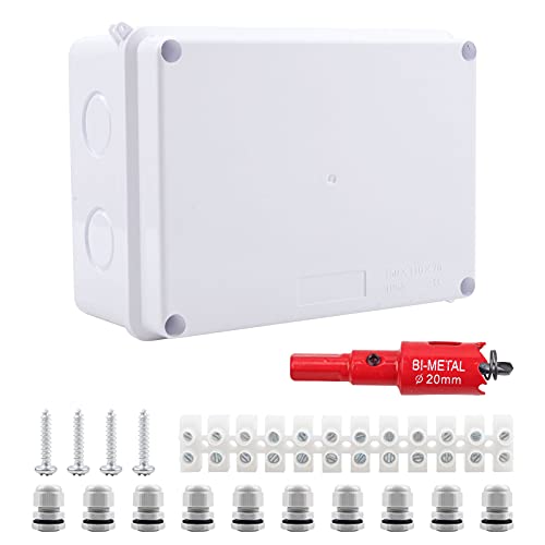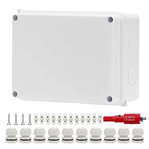 CPROSP kopplingsdosa, vattentät IP65 våtrumsburkar, ytmonterad, kopplingsbox, 150 x 110 x 70 mm för 6-12 mm, med 10 x kabelskruvar, med hålsåg 20 mm