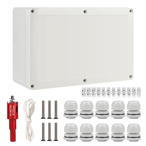CPROSP kopplingsdosa vattentät IP65 våtrumsburkar, ytmonterad kopplingsdosa, 230 x 150 x 85 mm för Ø 6–12 mm, med 10 x kabelskruvar, med hålsåg 20 mm