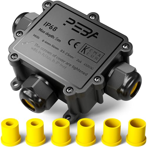 PEBA® IP68 Vattentät kopplingsdosa, 3-vägs kopplingslåda, utomhus vattentät Kabelkontakt, anslutningsbox, kopplingsdosor, fördelningsdosa, kabelanslutning för Ø 4 mm till 14 mm kabel, svart