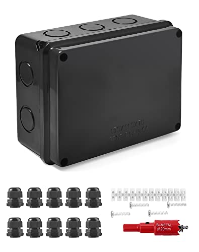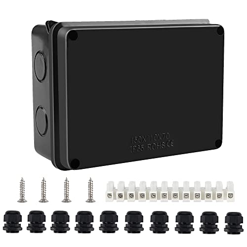 Elezenioc kopplingsdosa vattentät IP65 ytmonterad kopplingsbox, M25 distributionsdosa, stor ABS elbox kabelanslutning utomhus, extern elanslutningsbox, svart (150 x 110 x 70 mm)