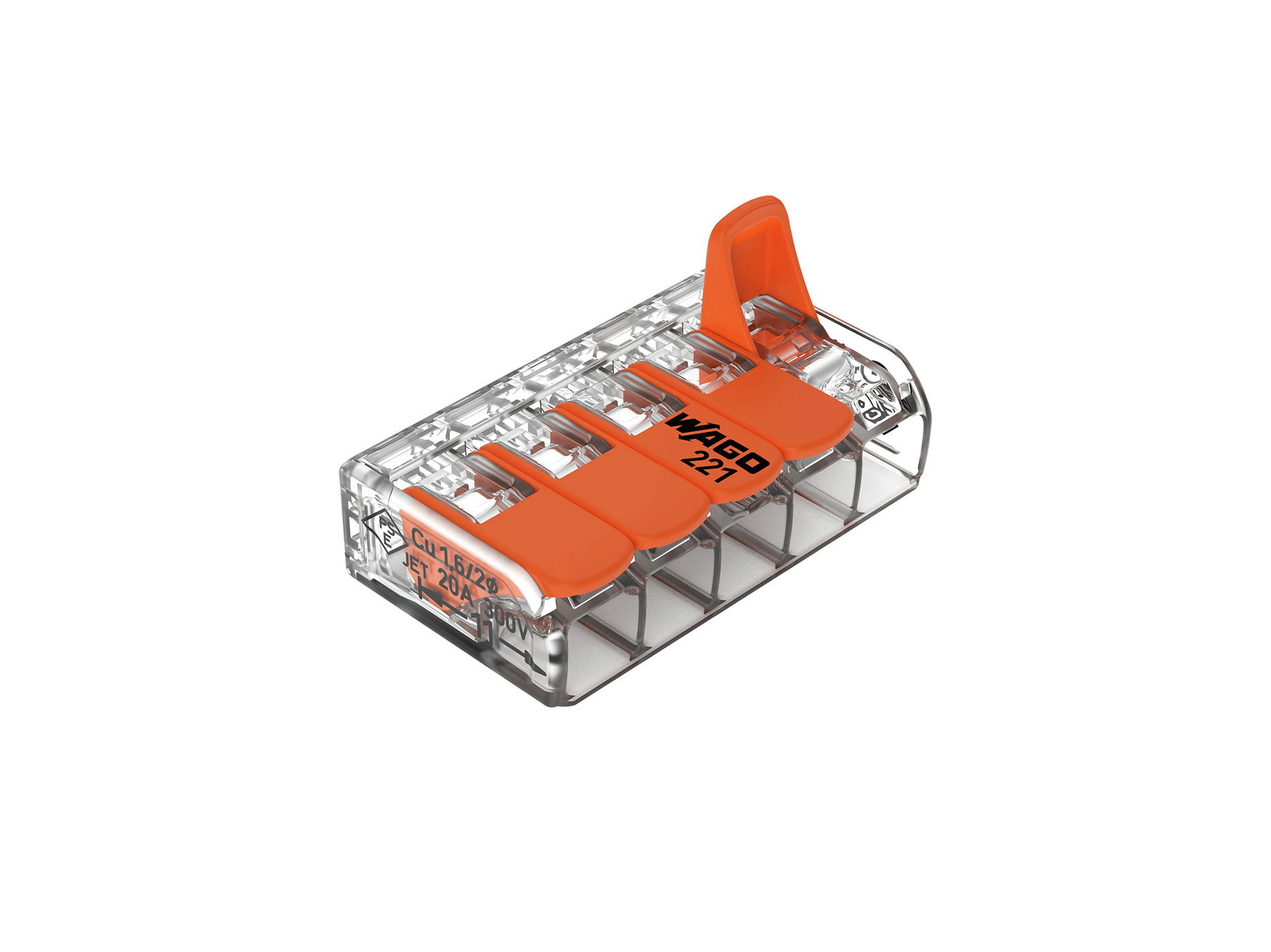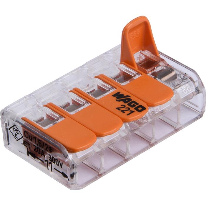 WAGO 221-485 Kopplingsklämma transparent, med låsspak 5 klämpositioner, 25--pack