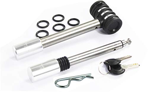 MAXXHAUL 50152 rostfritt stål kopplingslås stiftssats 5/8 tum och 1/2 tum diameter med säkerhetsklämma och anti-skallra O-ringar för klass I, II, III, IV och V-kopplingsmottagare – med låshuvud i
