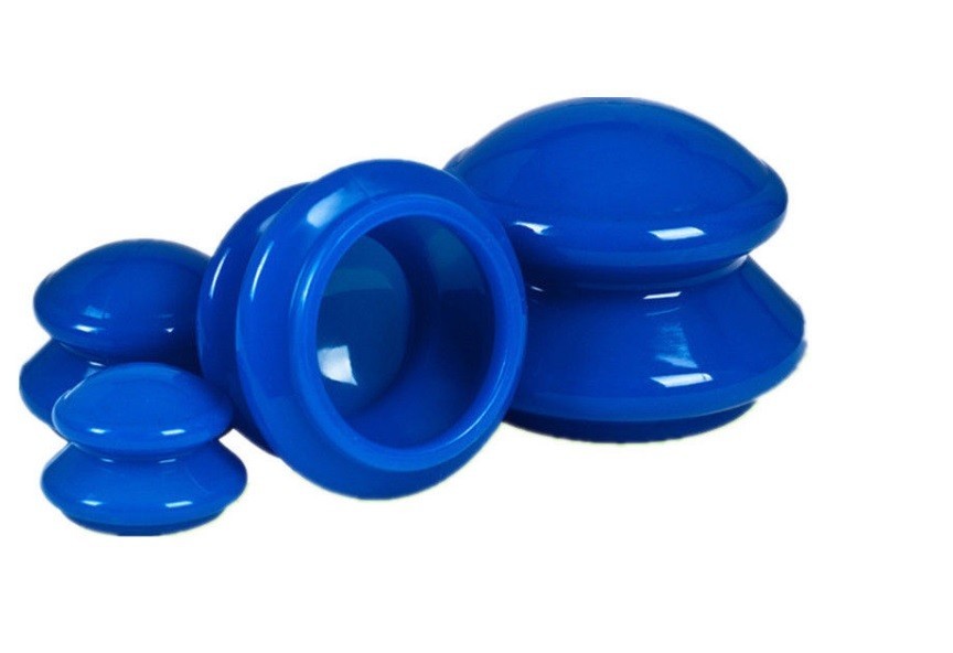 OFKPO 4PSC olika storlekar sugkopp terapiset hem spa koppning massagekit gummikopp massagekit för kroppsmassage och smärtlindring (blå)