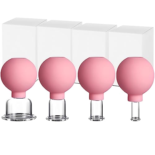 4 stycken koppglas med silikonsugkula, koppglas set av äkta glas, ansikts-cupping set mot veck och spänning, koppning mot celluliter