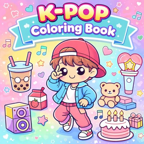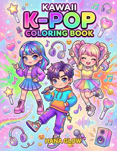 Kawaii K-Pop Coloring Book, Cute Chibi Idols, Korean Snacks & K-Fashion: 50 Adorable Fun Stress-Relief Pages for Teens, Kids & K-Pop Fans with Idols, Food, Outfits, Accessories & Music Themes.