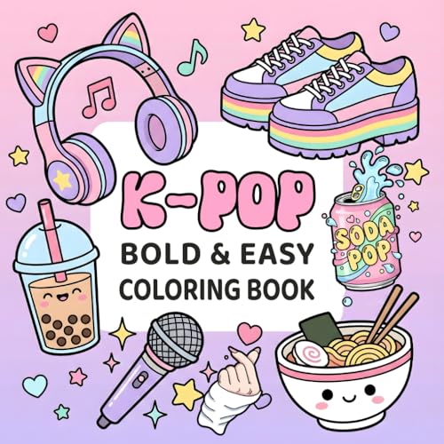 K-pop Bold & Easy Coloring Book: Cute Aesthetic Pages Inspired by Korean Kpop Music — A Fun Gift for Kids, Teens, and Adults