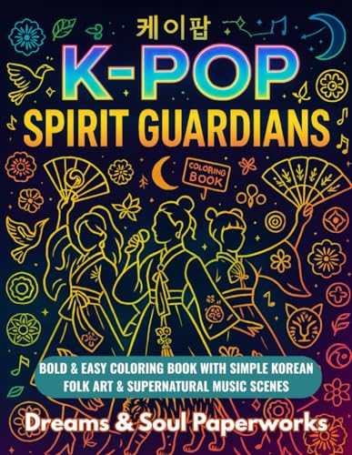 K-POP Spirit Guardians: Bold & Easy Coloring Book with Simple Korean Folk Art & Supernatural Music Scenes