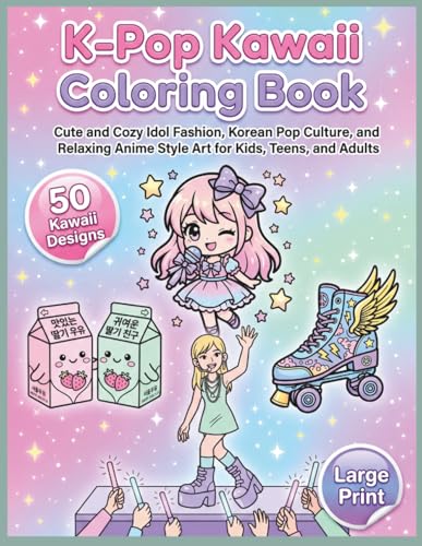 K-Pop Kawaii Coloring Book: 50 Large Print Cute and Cozy Idol Fashion, Korean Pop Culture, Food, and Relaxing Chibi Style Art for Kids, Teens, and ... 8x11" Size | Perfect Gift for Pop Music Fans