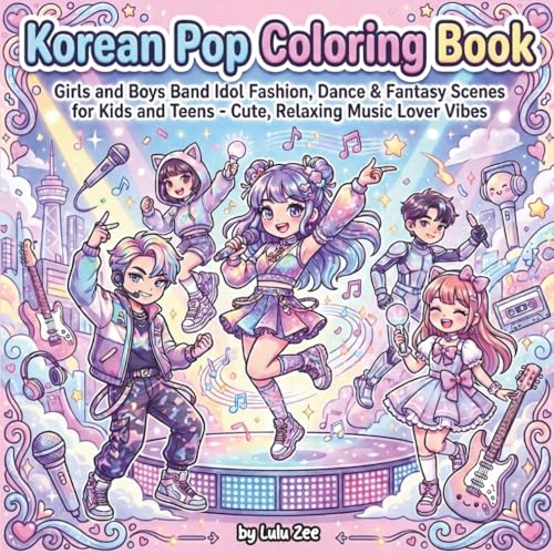 Korean Pop Coloring Book: Girls and Boys Band Idol Fashion, Dance & Fantasy Scenes for Kids and Teens – Cute, Relaxing Music Lover Vibes