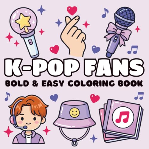 K-POP Bold and Easy Coloring Book: Simple and Cute Designs Featuring Korean Pop Culture, Lightsticks, Finger Hearts, and Music Aesthetics for Tweens, Teens, and Beginners
