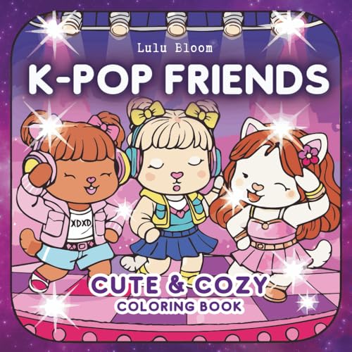 K-POP Friends Coloring Book: Bold Easy and Cozy 40 Pages with Cute Fuzzy Besties and Adorable Animals for Korean Pop Culture and Music Fans Great for Kids Teens Adults