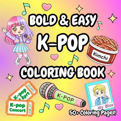 K-POP Coloring Book: Over 50 Pages of Bold & Easy Korean Music-Inspired Aesthetic for Fans: Featuring K-POP Idols on Stage, fan culture, K-Pop Fashion, Korean food, Musical Images, Fandom Lightsticks