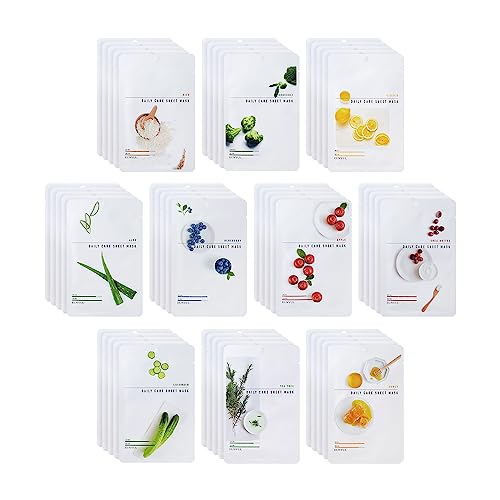 [Paket med 50] EUNYUL Daily Care Sheet Mask Pack (10 typer x 5 set) Korean Skincare face masker skönhet ansiktsmask bulk set ..