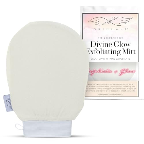 Seraphic Skincare Divine Glow Exfoliating Mitt (1pc) – 100%, Dye-Free, Bleach-Free Vegan Viscose Korean Exfoliating Glove – Body Exfoliator for Self-Tan Removal & Keratosis Pilaris