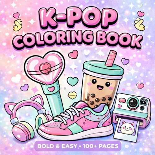 K-Pop Coloring Book: Bold and Easy Aesthetic: 50+ Kawaii Korean Inspired Designs for Teens and Adults - Simple Outlines of Idol Fashion, Boba Tea, Skincare, and Cute Food for Stress Relief