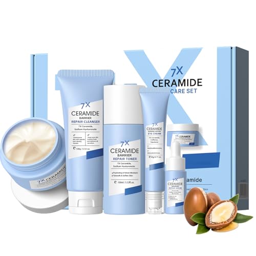 7 x Ceramide Skin Care Set, ansiktsvårdsset för kvinnor, korean Skincare set med Ceramidserum, Ceramidkräm, ögonkräm, toner, rengöringsgel, förbättra elasticiteten och hudstruktur, 5 stycken