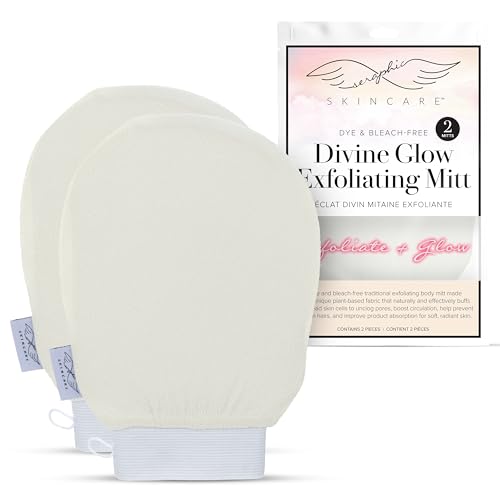 Seraphic Skincare Divine Glow Exfoliating Mitt (2pcs) – 100%, Dye-Free, Bleach-Free Vegan Viscose Korean Exfoliating Glove – Body Exfoliator for Self-Tan Removal & Keratosis Pilaris
