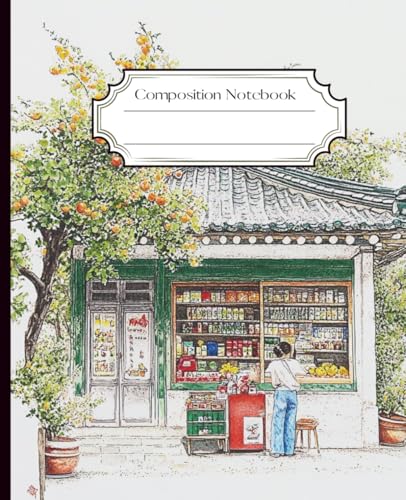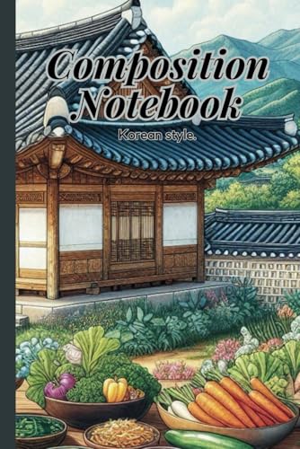 Korean Style Composition Notebook | Traditional Korean House & Ingredients Cover | Aesthetic 6 x 9 Inch Lined Notebook, 160 Pages for Writing, School, Work, Journaling, and Creative Thinking