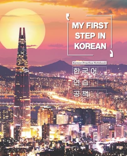 My First Step in Korean: A Korean Writing Practice Notebook for beginners learning Hangul. Featuring a beautiful sunset view of Seoul with Lotte Seoul ... traditional Korean manuscript grid style.