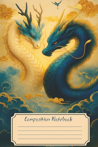 Composition Notebook Sky Dragons Korean Minhwa Art Aesthetic Notebook for School Writing or Creative Notes: Whimsical chibi-style blue and gold ... journaling note-taking, or as a cute gift.