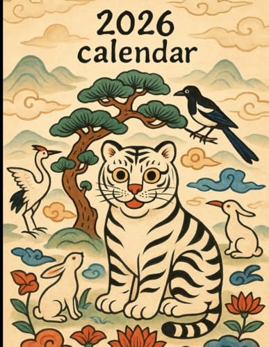 2026 Korean Folk Art Animal Calendar: Whimsical Minhwa-Style Tigers, Cranes, Rabbits, and More