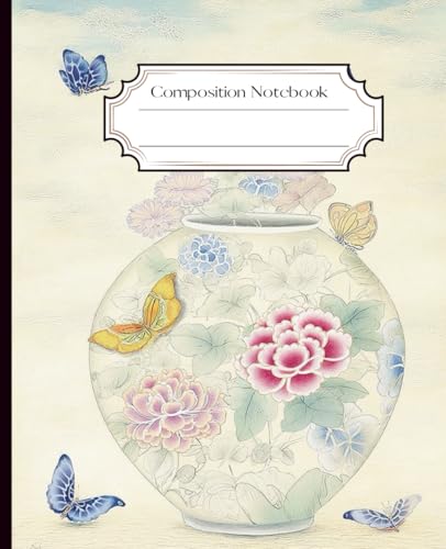 Korean Ink Style Composition Notebook: Wide Ruled | East Asian Floral Journal