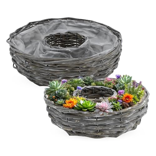 Rotting växtring natur med folie set om 2 – 30/25 cm – naturfiber blomskål för direkt plantering – trädgårdsdekoration blomkruka växtskål blommor korg växter skål örter kruka