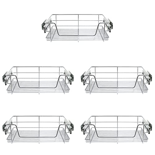5 st Utdragbara Trådkorgar i 304 Rostfritt Stål 60 cm B Mjuk Stängning För Skåp och Skafferier Kapacitet: 15-20 kg per Korg Kökslådor Förvaring Köksförvaring Tvättstuga 430mm D x 497mm W x 140mm H