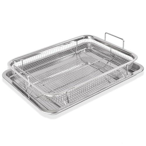 Bhina BBQ Grillkorg i Rostfritt Stål med Handtag och Bottenskål - Bakformsset med Krisper-Korg, Nät, Koppar Friteringskorg, Grillgaller för Grillning