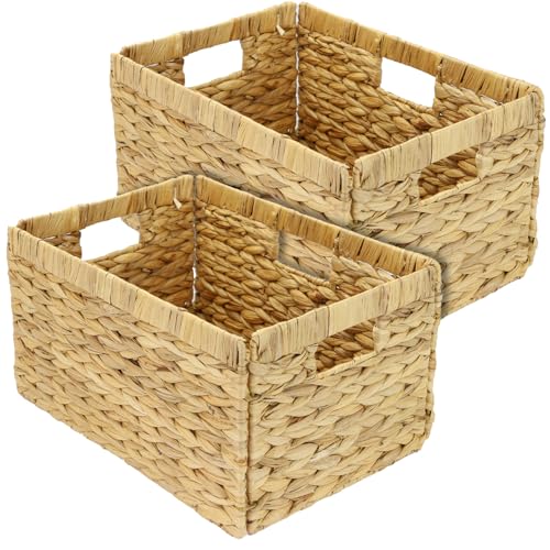 HMF Förvaringskorg, korg flätad av vattenhyacint sjögräs | set om 2 | lämplig för halvt fack | 30 x 34 x 15 cm