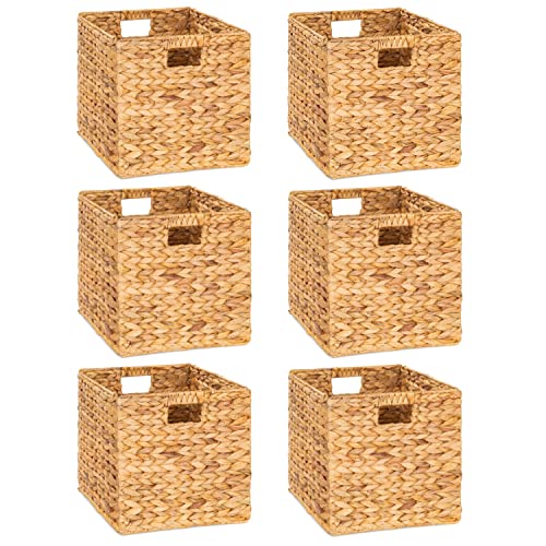 M4DECOR Förvaringskorg, flätade förvaringskorgar för hyllor, förvaringskorgar av vattenhyacint, vävda korgar för förvaring, flätad korg för sovrum, vardagsrum, barnkammare (6-pack, 30 x 30 cm)