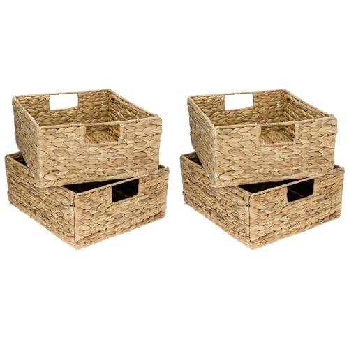 HMF Förvaringskorg, korg flätad av vattenhyacint sjögräs | set om 4 | lämplig för halvt fack | 30 x 34 x 15 cm