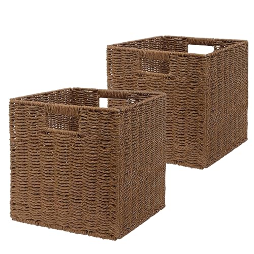 Aluusy Vävd Förvaringskorg, Uppsättning av 2 Vikbara Vattenhyacint Pappers Förvaringskub, Korg för Kallax -Hylla Kontor Sovrum Korg för Klädleksaker 28x28x28cm