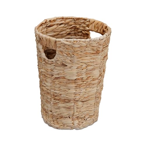 Relaxdays papperskorg av vattenhyacint, papperskorg kök & badrum, liten tvättkorg, H x D: 32 x 25 cm, korg överkruka, natur