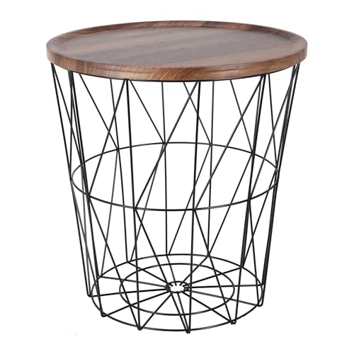 Spetebo Design Sidobord – metallkorg med trälock – dekorativt soffbord inkl. korghylla