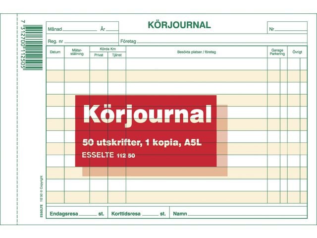 Körjournal Block 50 Sidor Med Kopia A5L