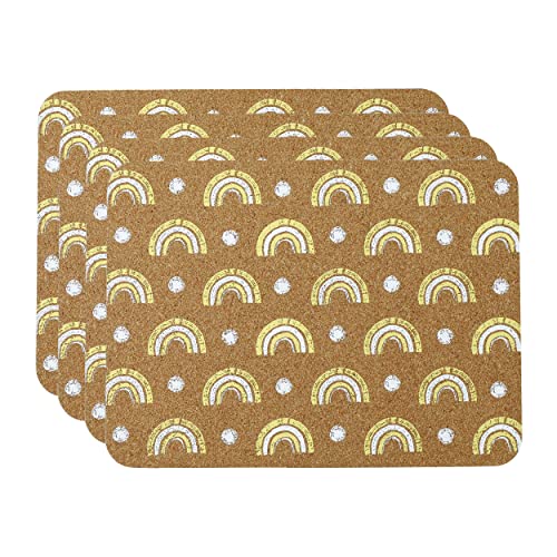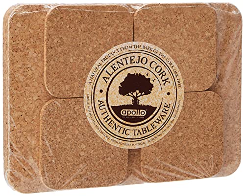 apollo THE HOUSEWARES VARUMÄRKE Fyrkantig kork bordstablett och underlägg set med 4, runda kanter, värmebeständig, hållbar, biologiskt nedbrytbar, 30 x 20 x 1 cm, naturlig
