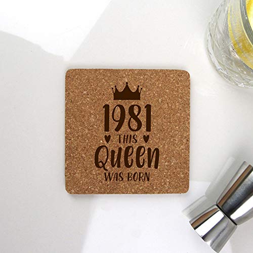 eBuyGB Drycker matta, bordstablett graverad fyrkantig underlägg – 1980 denna drottning föddes design-40:e kvinnor, her-fyrtionde födelsedagspresent till mamma, kork