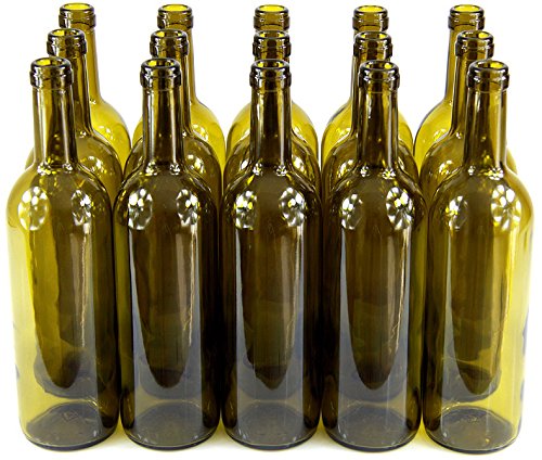 Vinflaskor med eller utan korkar, tomma glasflaskor på 750 ml för flaskor för sprit eller vin i 3 färger, olivgrön, 16 st. utan kork.