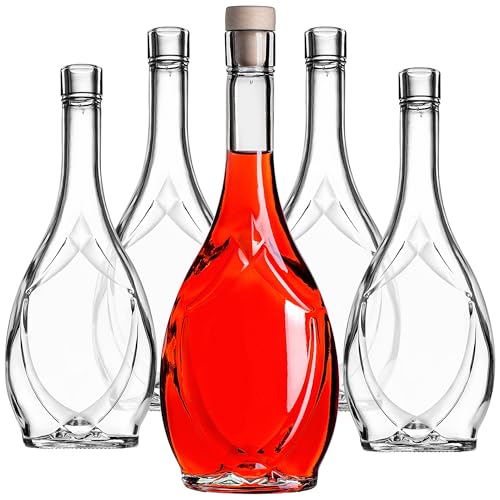KADAX tomma glasflaskor 500 ml, 5 stycken, likörflaskor med kork, flaskor för att fylla likör, vin och sprit, dekorativa flaskor, vinflaskor av glas