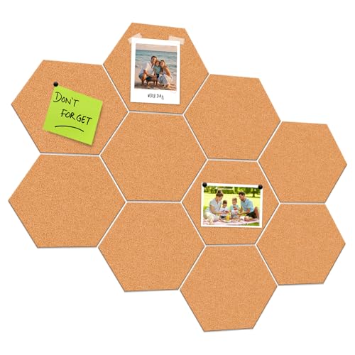 Sinjeun 14 stycken sexkantiga korkplattor, korkskiva, självhäftande korktavla, korkvägg, för kontor minnesdag, heminredning och fotohängande, 200 x 175 x 6 mm, naturbrun