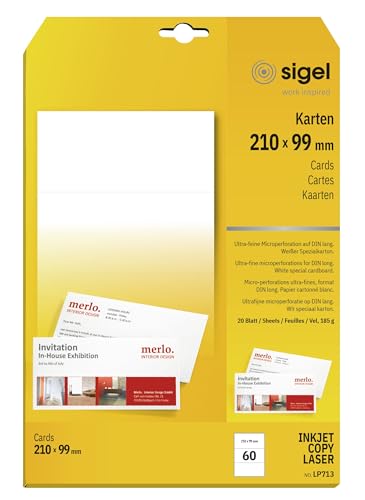 Sigel LP713 PC korrespondenskort DIN långa, tryck på båda sidor, vit, 185 g, 60 stycken