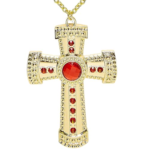 Widmann 95723 halskedja med kors och ädelstenar, unisex – vuxna, guld/röd, Taglia unica