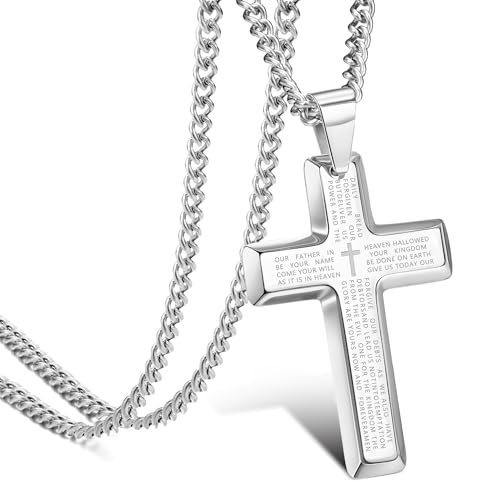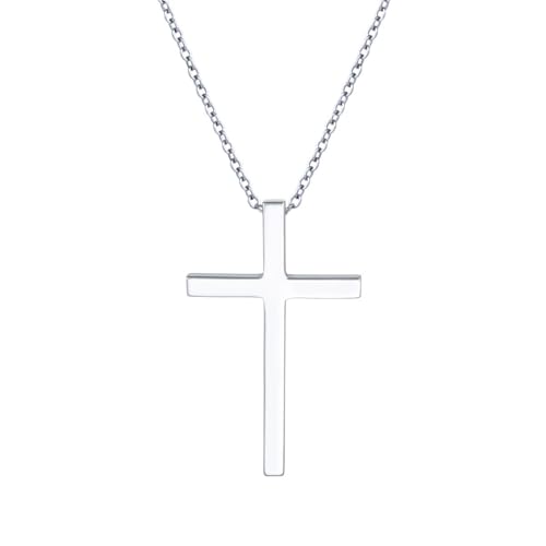 Hshenjhu Korskedja, kors halsband smycken rostfritt stål för män kvinnor, hänge ljusäkta svettbeständig med 60 cm kedja, dopkedja för kristendom gåva nattvardsgång konfirmation, silver