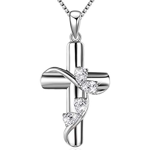 DAOCHONG 925 sterlingsilver zirkonium tro hoppet kärlek kors hänge halsband för kvinnor födelsedag alla hjärtans dag gåvor, box kedja 45 cm, Metall, Kubisk zirkonia