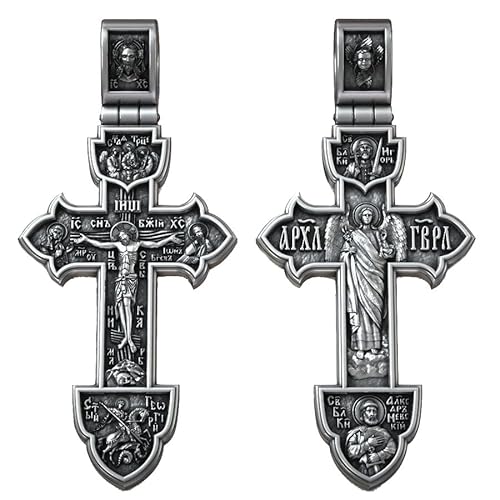 Ortodoxt krusifix Jesus Kristus kors med ärkeängel och helgon hänge 925 massivt sterlingsilver, 54x34x9mm, 925 massivt sterlingsilver, Ingen ädelsten