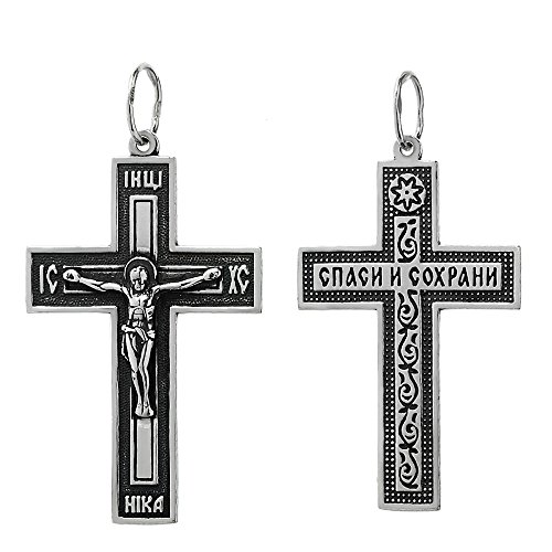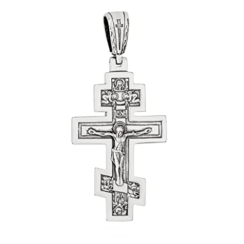 NKlaus Kors av 925 sterlingsilver, ortodoxt krucifix hänge, symbol för tro, 6248, dop, Silver, Ingen ädelsten