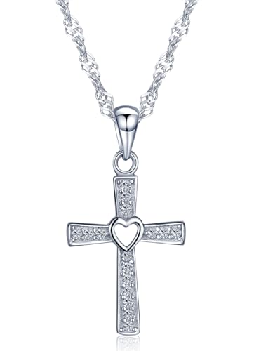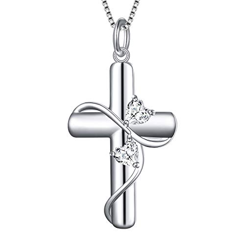 Infinity U - Kvinnor 925 Sterling Silver Kors Halsband Elegant Hjärta Kors Mönster Hänge Halsband, Roséguld/Silver, Sterlingsilver, Kubisk zirkonia