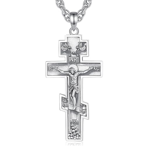 CELESTIA Jesus Kors Halsband 925 Sterling Silver Crucifix Hänge Herr Grekisk Ortodoxa Kors Halsband Kristna Smycken Presenter för Män Kvinnor Unisex