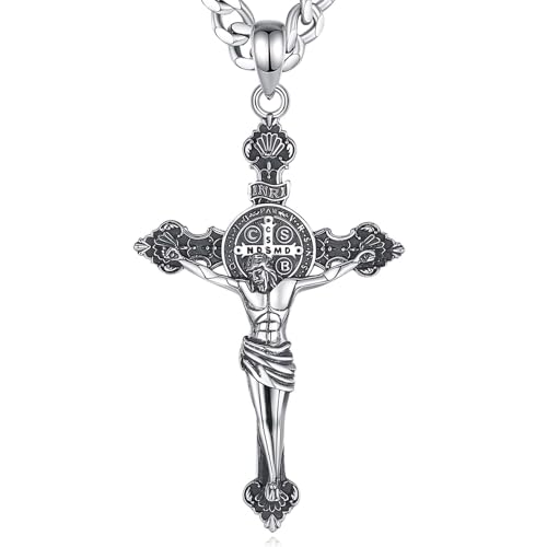 CELESTIA Saint Benedict Cross Hänge Crucifix Halsband för Kvinnor Herr Halsband 925 Sterling Silver Dubbelsidigt Jesus Kors Halsband Kristna Katolska Gåvor